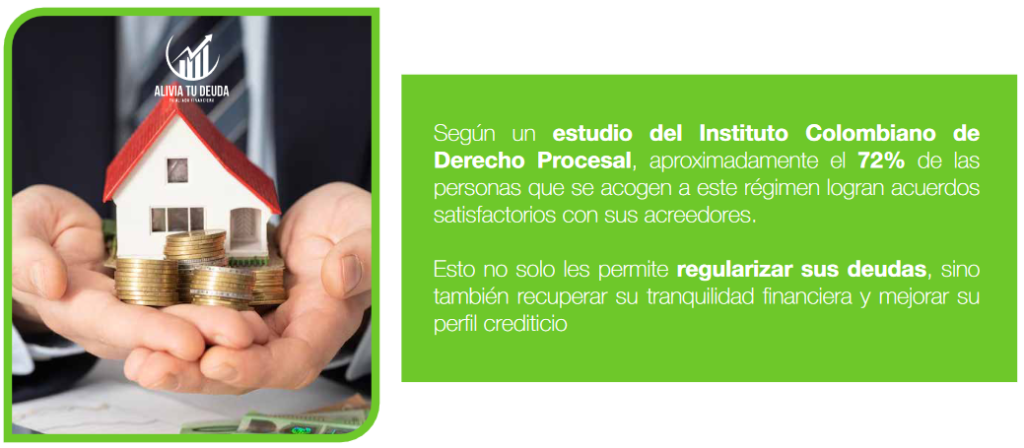 Los beneficios incluyen la suspensión de embargos, la eliminación de reportes negativos ante las centrales de riesgo, la renegociación de deudas y la recuperación de la estabilidad financiera y económica.